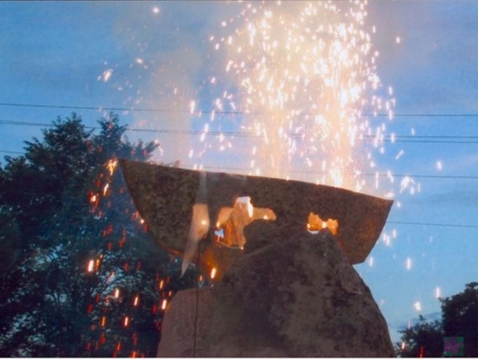 atklāja Zigrīdas un Jura Rapu veidoto skulptūru, robežakmeni, latviešiem, lībiešiem un igauņiem - akmens laivu ar putniņu.