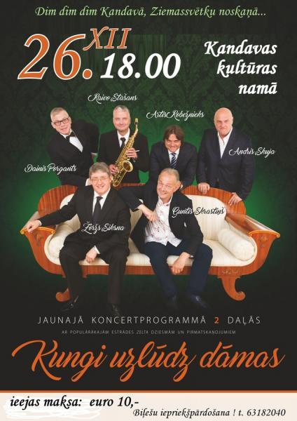 26. decembrī plkst.18.00 koncertprogramma "Kungi uzlūdz dāmas". Biļetes cena 10 EUR.