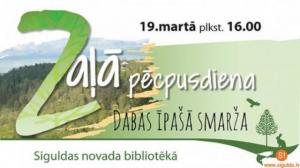 19.martā plkst.16.00 Siguldas novada bibliotēkā notiks Dabas aizsardzības pārvaldes organizēta tikšanās ar iedzīvotājiem jeb Zaļā pēcpusdiena „Dabas īpašā smarža”.