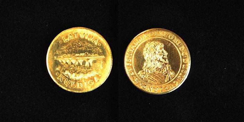 uzraksti: LATVIJA un KULDĪGA. Monētas izgatavotas no misiņa un tās