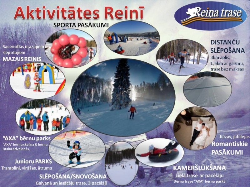 • Līdzās slēpošanas trasei atrodas kafejnīca "Reiņa Cafe" un viesu nams