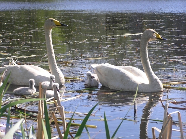 Ziemeļu gulbjiem šajā laikā lielākā daļa mazuļu ir spējīgi lidot. Tas arī izskaidro faktu, ka ziemeļu gulbji pakāpeniski izspiež no ligzdošanas teritorijām paugurknābja gulbjus. Pirmais ziemeļu gulbju ligzdošanas gadījums Latvijā konstatēts 1973. gadā, bet tagad šeit ligzdo jau apmēram 250 pāru. Paugurknābja gulbji – ap 1000 pāru. Šīs sugas var atšķirt pēc knābja krāsas: paugurknābja gulbim tas ir sarkanīgi oranžs, bet ziemeļu gulbim – dzeltens.