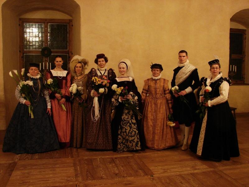 Koncerta pirmo daļu – galma dejas – raksturo graciozitāte, smalkums un grezni kostīmi, kas šūti pēc 16., 17.gadsimta vēsturisku personu parādes portretos redzamu tērpu paraugiem. Piemēram, izmantoti Saksijas princeses Amēlijas un Zviedrijas princeses Elizabetes tērpu paraugi.