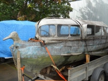 Amfībija vairāk nekā 40 gadus nogulēja Baiku dzimtas dārzā. "2012. gadā visi kopā nolēmām atjaunot vectēva roku darbu, ko tagad prezentēsim izstādē. Atjaunotā amfībija ir ļoti grezna ar baltu dīvāniņu kāds iepriekš nebija," stāsta Aigars, kas ir profesionāls galdnieks un jau 22 gadus strādā jahtu būvē.