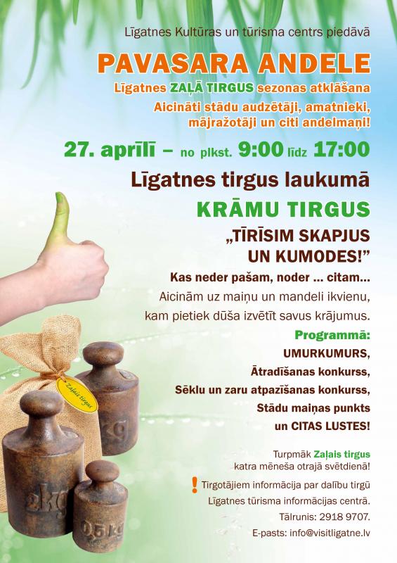 Dienu pēc Latvijas sakopšanas darbiem Lielajā talkā gaidām visus Līgatnē svētdien, 27. aprīlī, kur no plkst. 9:00 līdz 17:00 notiks Zaļā tirdziņa pavasara sezonas atklāšana.