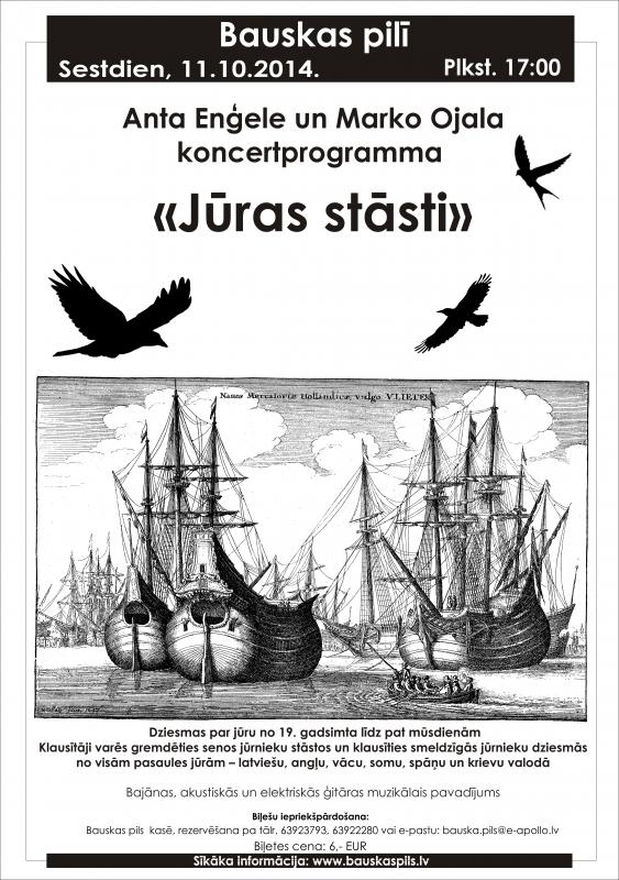 11. oktobrī plkst. 17:00 Bauskas pilī ar koncertprogrammu “Jūras stāsti” uzstāsies dziedātāja Anta Eņģele un Marko Ojala. Koncertā skanēs jūrnieku dziesmas no visām pasaules jūrām – latviešu, angļu, vācu, somu, spāņu un krievu valodā.