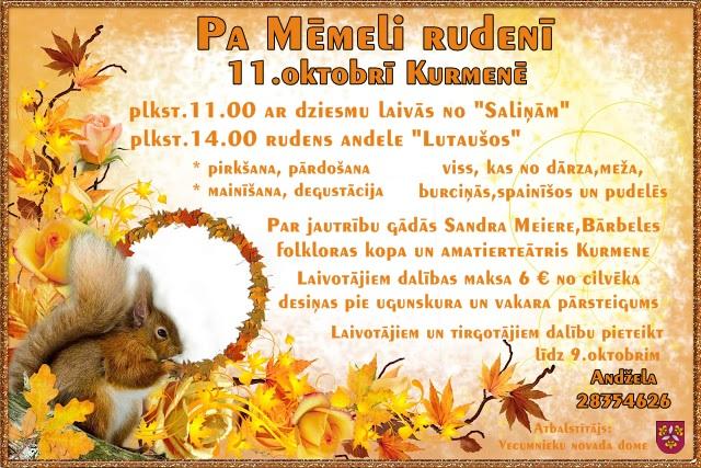 Sestdien, 11.oktobrī, Kurmenē notiks svētki “Pa Mēmeli rudenī”.
