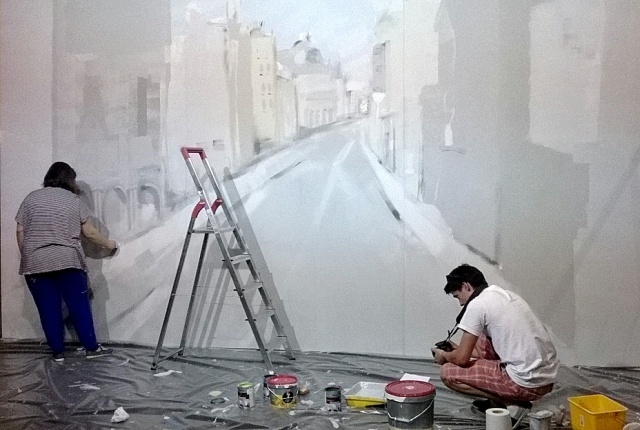 Pašā vasaras viducī šī 6 x 4 metru lielā glezna ļāva sajust ziemas elpu un noskaņoties Ziemassvētku koncerta fotosesijai solistiem Elīnai Šimkus, Daumantam Kalniņam, Jānim Kurševam, diriģentiem Kasparam Ādamsonam un Andrim Veismanim, kā arī pūšamo instrumentu ansamblim “Live Brass”.