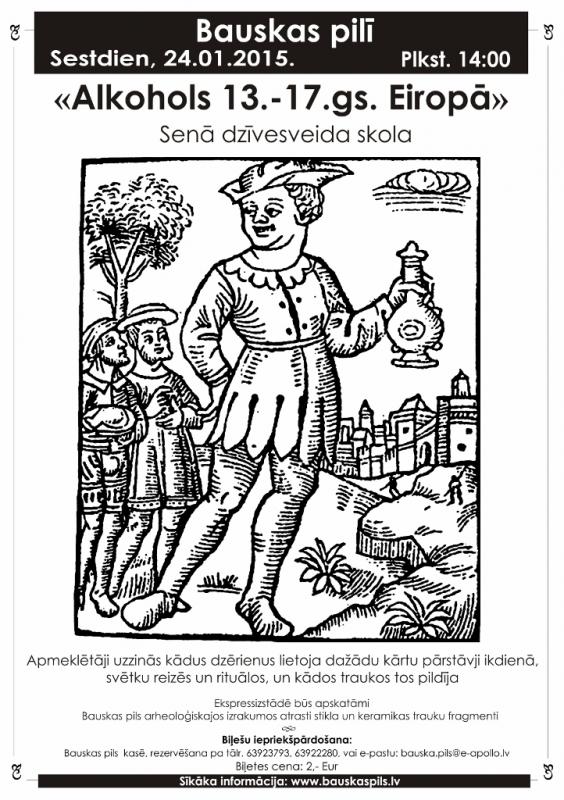 2015. gada 24.janvārī plkst. 14:00 Bauskas pils muzejā notiks Senā dzīvesveida skolas pasākums „Alkohols 13.-17.gs. Eiropā”. Apmeklētāji uzzinās, kādus dzērienus lietoja dažādu kārtu pārstāvji ikdienā, svētku reizēs un rituālos un kādos traukos tos pildīja.