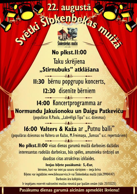 Ielūdzam uz svētkiem Šlokenbekas muižā 22.augustā!