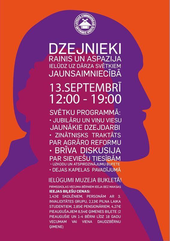 Šo svētdien, 13. septembrī, Latvijas Etnogrāfiskajā brīvdabas muzejā no plkst. 12:00 līdz plkst.19:00 uz Dārza svētkiem ielūdz dzejnieki Rainis un Aspazija.
