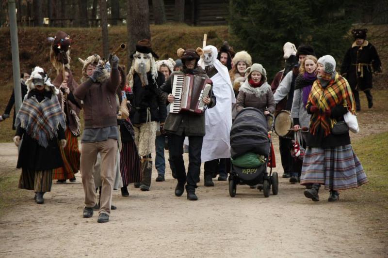 Rotaļas un maskošanās ar folkloras kopām “Grodi” (no plkst.12:00 līdz plkst.13:00), “Garataka” (no plkst.13:15 līdz plkst. 14:15), “Krulla”, “Zvīgzna” (no plkst.14:30 līdz plkst.15:30). Lielā Bluķa sadedzināšana pļavā pie priedes kroga plkst. 15:30