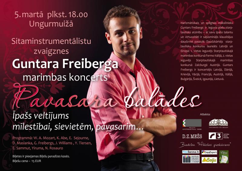 5.martā pulksten 18.00 Ungurmuižā būs īpaša iespēja dzirdēt sitaminstrumentālistu zvaigznes Guntara Freiberga marimbas koncertu „Pavasara balādes”.