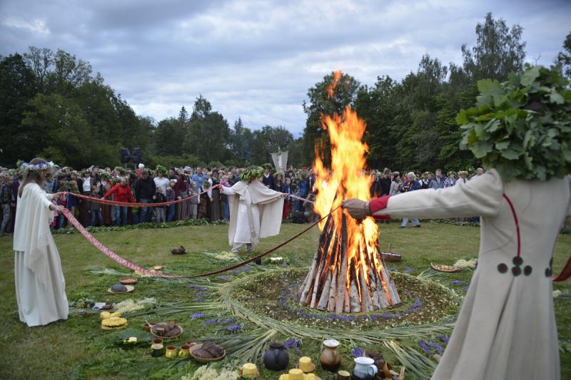 22.15 – 23.45 - Uguns pūdeles aizdegšana kopā ar Salacgrīvas “Cielava” un Dzimtu ugunskura uguns iedegšanas rituāls Jāņkalna galā kopā ar Kokneses “Urgas”